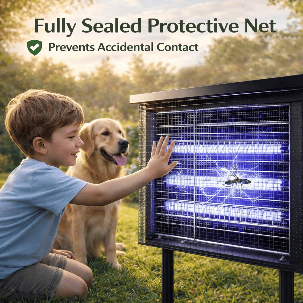 A: Absolutely. It uses physical insect control (electric grid) without harmful chemicals, sprays, or fumes.